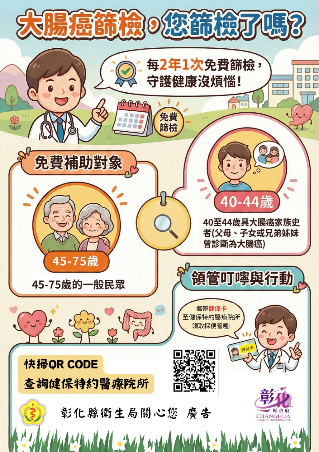 (五) 大腸癌篩檢兩年一次免費做,及早檢查守護健康!彰化縣衛生局關心您!