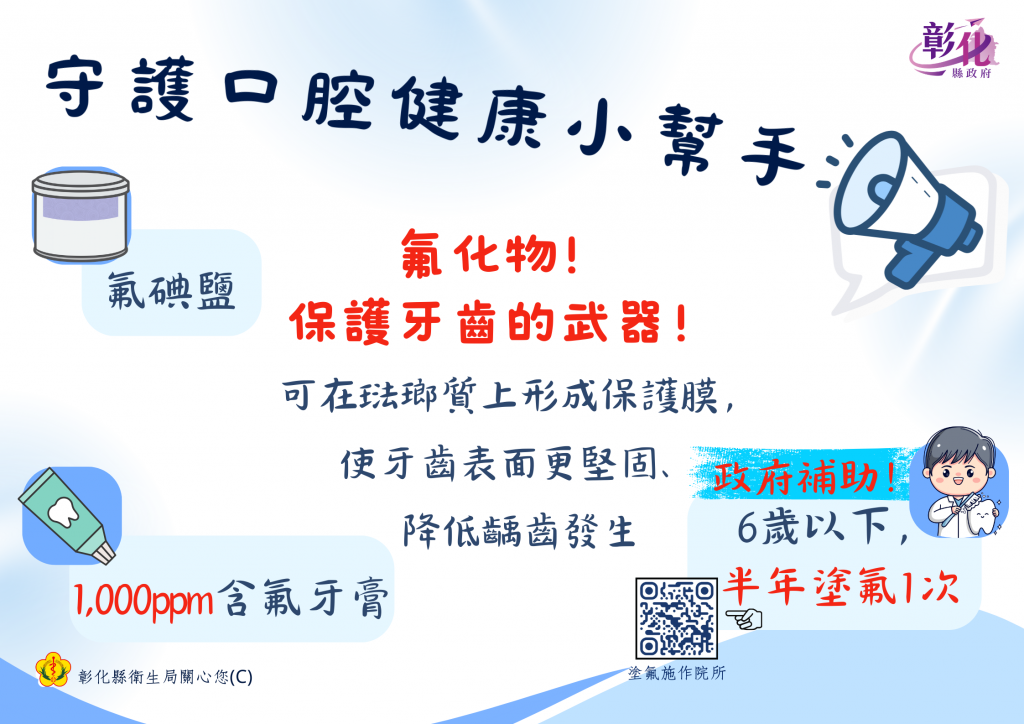 (十) 氟化物護牙有保障,6歲以下半年塗氟一次守護口腔健康!彰化縣衛生局關心您!